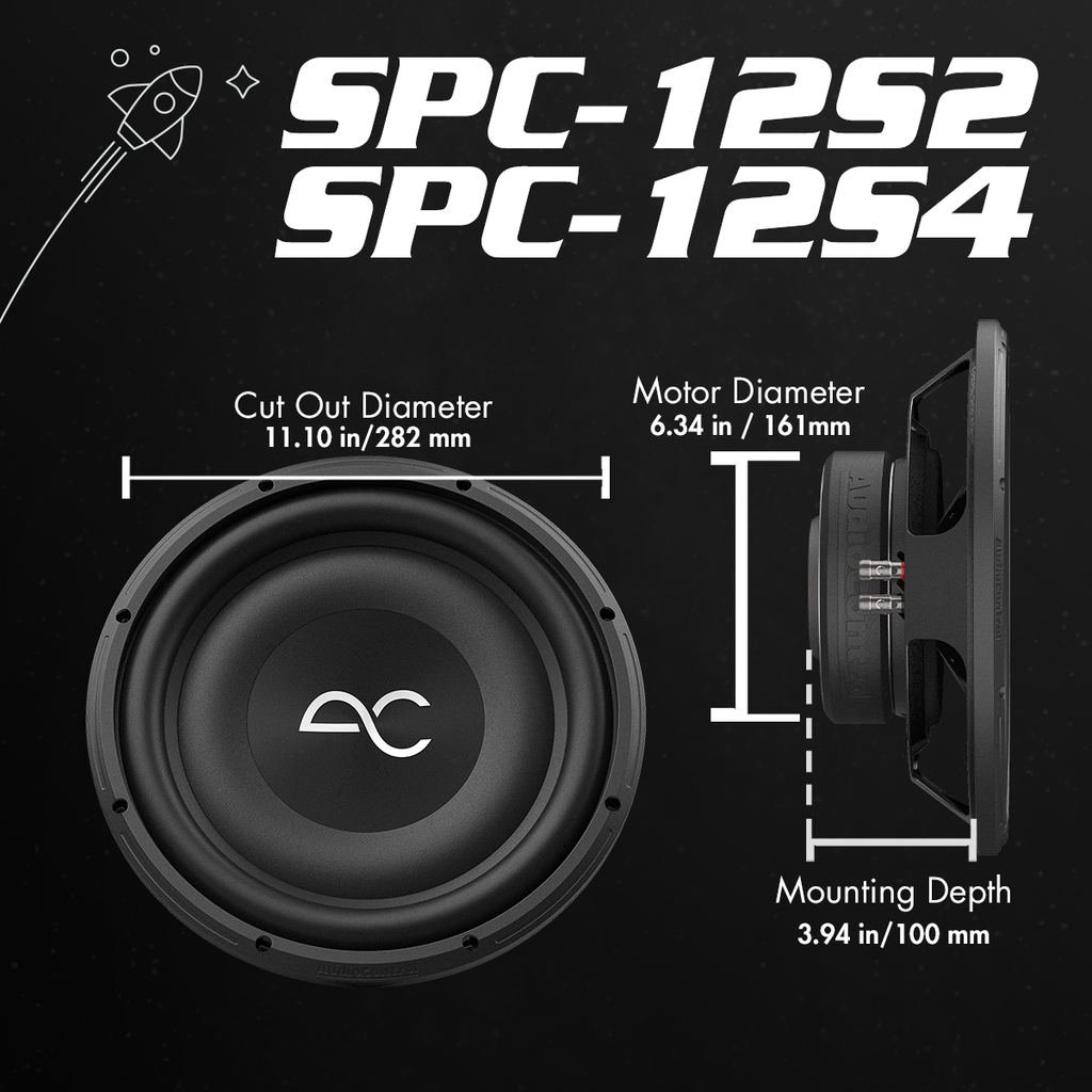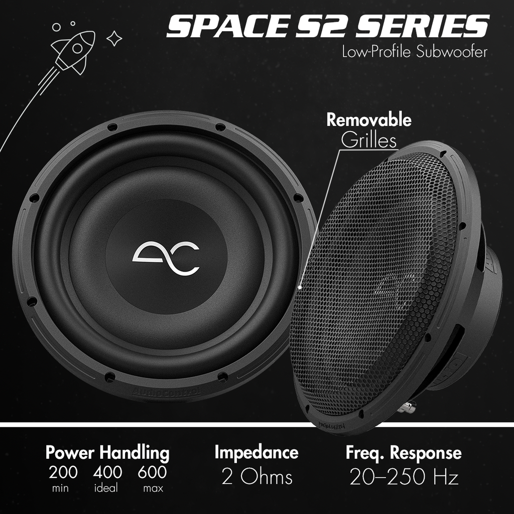 Upgrade your sound system with the AudioControl 12" 400 Watt Space Series Low-Profile Subwoofer. This subwoofer is specially designed to deliver powerful and clear bass, featuring your choice of 2-OHM or 4-OHM impedance which helps optimize power to the speaker.