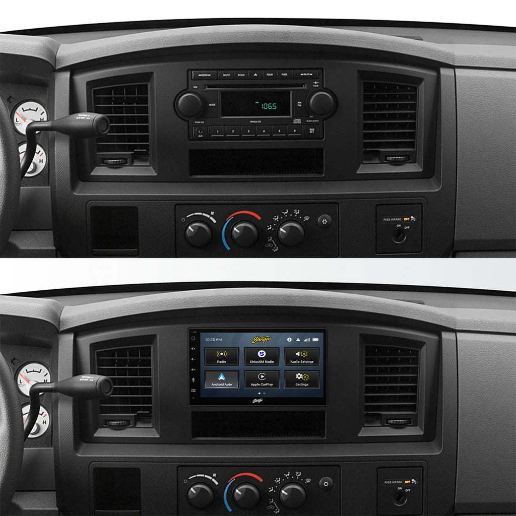 Enhance your driving experience with the Dodge Ram 6.8" Double DIN Radio Kit, which is here to take your ride to the next level! Prepare to be blown away by this kit's cutting-edge features and sleek design. With full compatibility with Apple CarPlay and Android Auto(wireless & wired connection), you'll have seamless access to all your favorite apps at your fingertips. Make hands-free calls, listen to your favorite jams, and stay connected on the road like never before. And that's not all - this kit even supportsup to 4 camera inputs with adjustable parking guidelines for effortless maneuvering. This kit includes a vehicle-specific interface and custom-fit dash kit to make your dash look like new. Upgrade yourDodge Ram today and unleash the excitement on every drive!