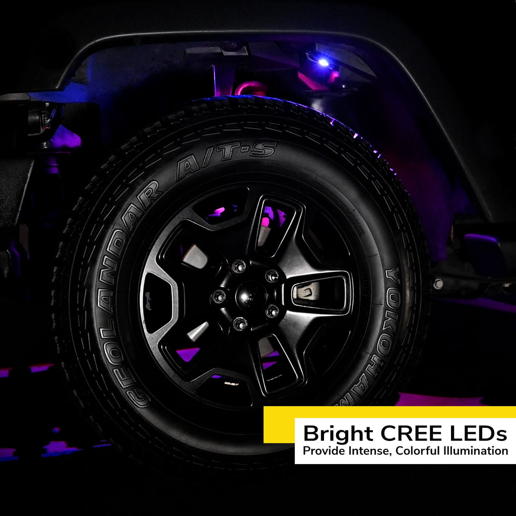 Bright Cree LEDs: Colorfully illuminates the vehicle with bright, powerful RGB lighting.