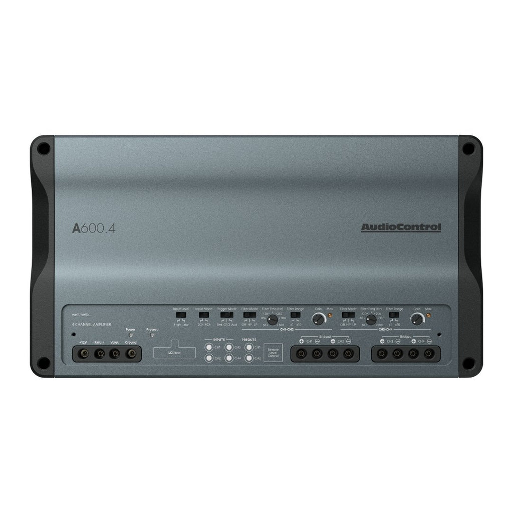 Experience next-level audio with the AudioControl A600.4 Altitude 4-Channel Amplifier. Featuring a sleek, matte grey aluminum chassis for superior thermal management, this amplifier delivers exceptional sound quality with advanced features like Valet Mode to limit volume and protect your system from guest drivers. Unlike other amplifiers, it is engineered for flawless performance in start-stop and electric vehicles, combining an efficient power supply, high-quality HEXFET® MOSFETs, and a premium toroidal transformer for clear, powerful sound. Elevate your audio experience—order now!