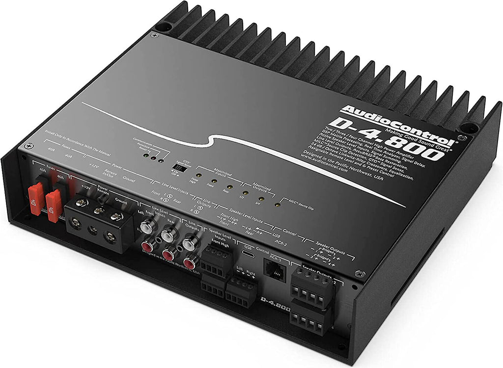 Get ready to elevate your audio experience with the AudioControl D-4.800 4-Channel Car Amplifier with DSP & Matrixing! This powerhouse delivers exceptional sound quality, boasting 125 watts RMS x 4 at 4 ohms and 200 watts RMS x 4 at 2 ohms. Fine-tune your audio with variable high- and low-pass filters, a 30-band graphic EQ, advanced DSP, and matrix technology for unparalleled sonic detail. The all-aluminum chassis ensures durability and style, making it the ultimate choice for music enthusiasts and audiophiles. Upgrade your ride and immerse yourself in premium sound with the D-4.800!