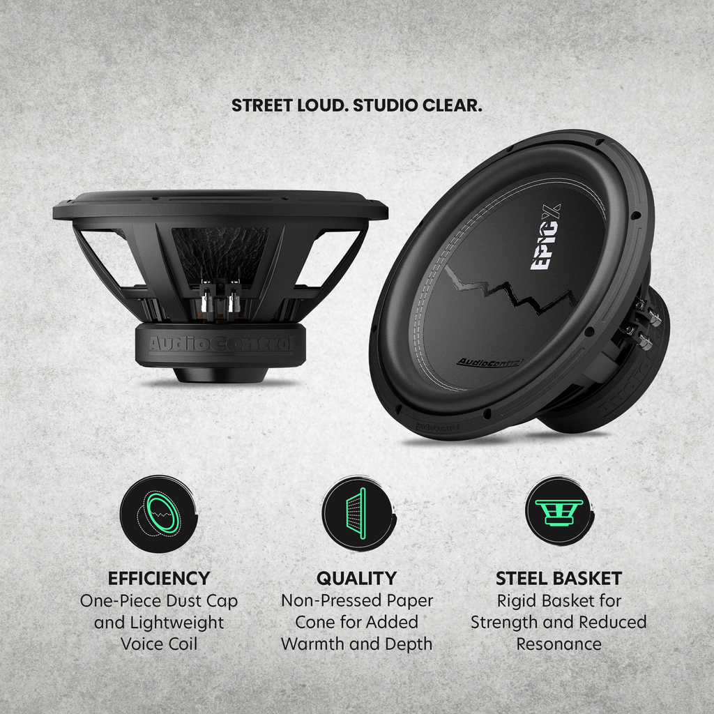 - Pair with The EPICENTER: Unleash unmatched bass, as the EPICX Series is engineered to seamlessly integrate with AudioControl's legendary bass restoration processor for mind-blowing low frequencies.