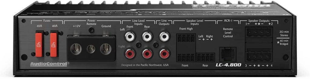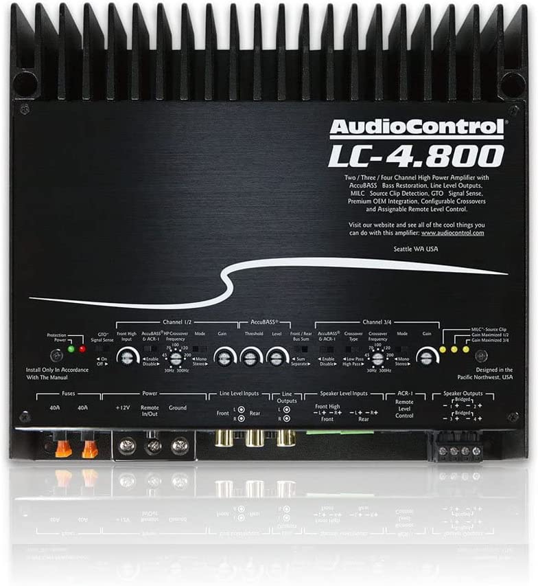 the AudioControl LC-4.800 Amplifier is a versatile and high-performance solution for enhancing car audio systems. Boasting AccuBass technology for optimized bass performance, this amplifier delivers deep and powerful low-end frequencies. Its 4/3/2 channel flexibility allows for complete customization and tuning of sound, while the power output of up to 125 watts RMS x 4 at 4 ohms and 200 watts RMS x 4 at 2 ohms provides unmatched power and precision, ensuring a concert-like audio experience for every track.