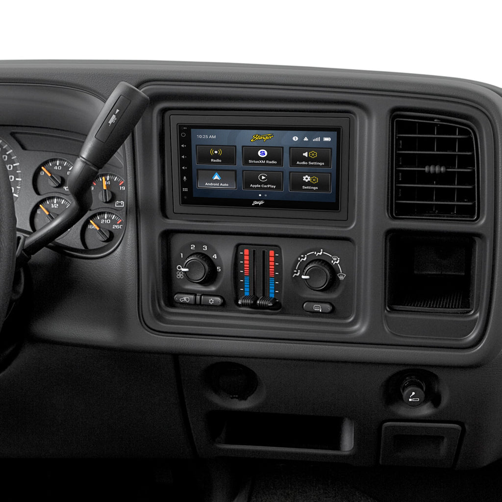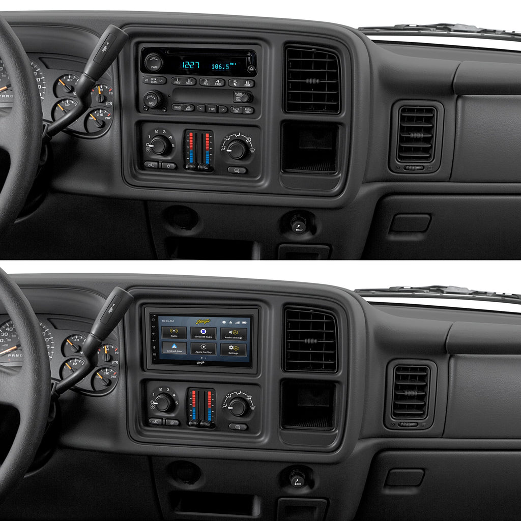 Enhance your driving experience with the Chevy Silverado/GMC Sierra 6.8" Double DIN Radio Kit, which is here to take your ride to the next level! Prepare to be blown away by this kit's cutting-edge features and sleek design. With full compatibility with Apple CarPlay and Android Auto (wireless & wired connection), you'll have seamless access to all your favorite apps at your fingertips. Make hands-free calls, listen to your favorite jams, and stay connected on the road like never before. And that's not all - this kit even supports up to 4 camera inputs with adjustable parking guidelines for effortless maneuvering. This kit includes a vehicle-specific interface and custom-fit dash kit to make your dash look like new. Upgrade your Chevy Silverado/GMC Sierra today and unleash the excitement on every drive!