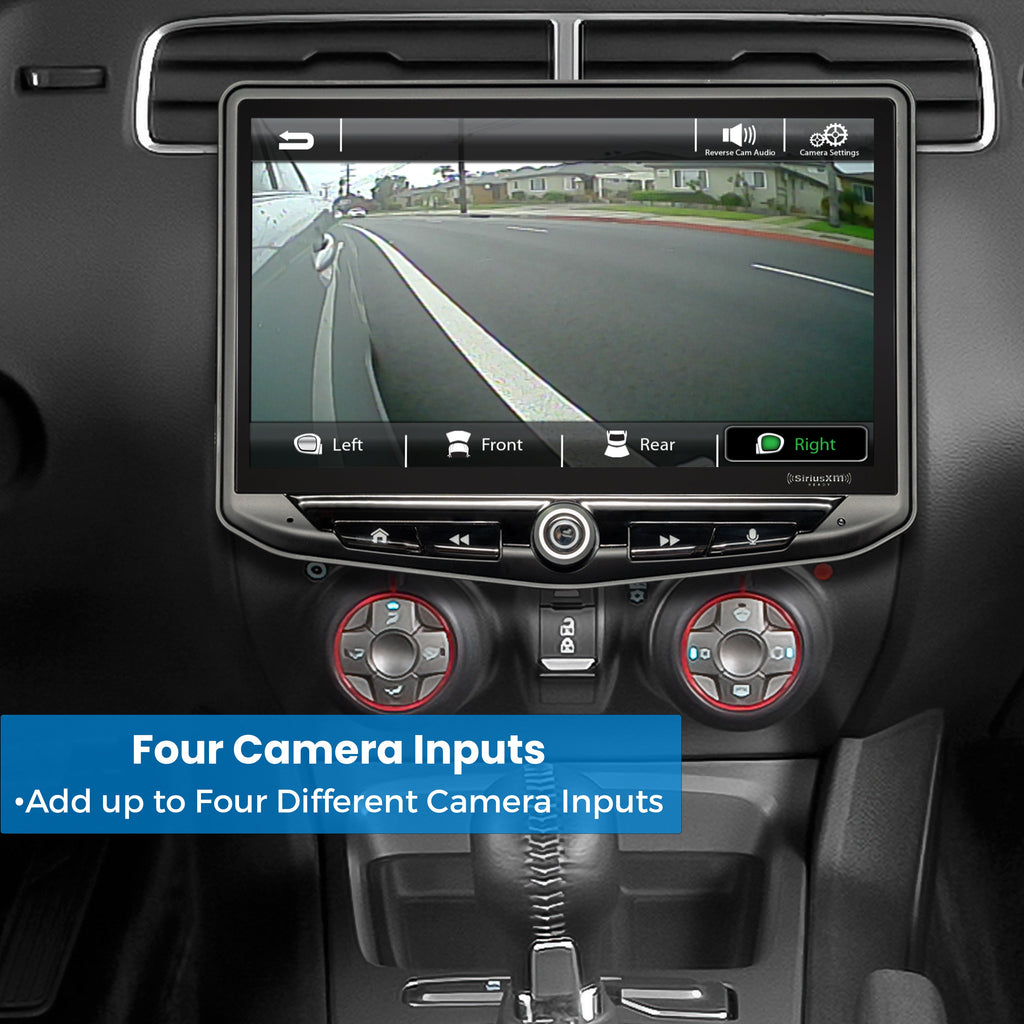 Media Features: Android Auto, Apple CarPlay, hands-free Bluetooth, SiriusXM-ready*, and HDMI. It also has safety features like 4 camera inputs and an integrated GPS (microSD card sold separately).
