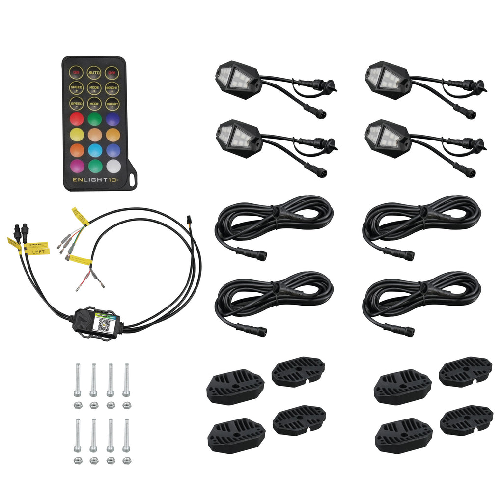 With ENLIGHT10 APP full control, you can easily adjust brightness, choose colors, and sync to music for a truly immersive lighting experience. The daisy chain connections allow for easy installation and expandability, while HEIGH10+/Horizon10/Horizon12 Connectivity ensures seamless integration with your vehicle’s infotainment system and other lighting accessories. Built to withstand harsh weather and rugged conditions, the COLORTRAIL Chasing Rock Lights are perfect for off-road vehicles and trucks, adding bold, customizable lighting to any adventure. Stand out and make a statement with these cutting-edge, durable rock lights.