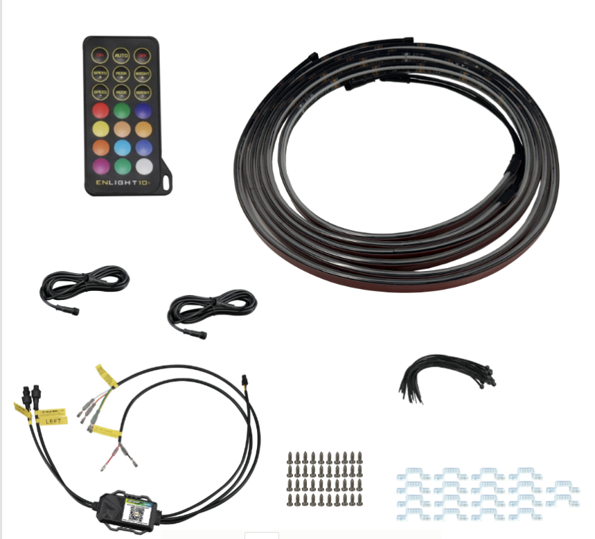 As an added bonus, the kit includes RGBW COLORTRAIL lighting, allowing you to customize your truck’s underbody lighting with millions of colors for a unique, personalized appearance on our ENLIGHT10 Bluetooth App and/or Horizon connectivity.