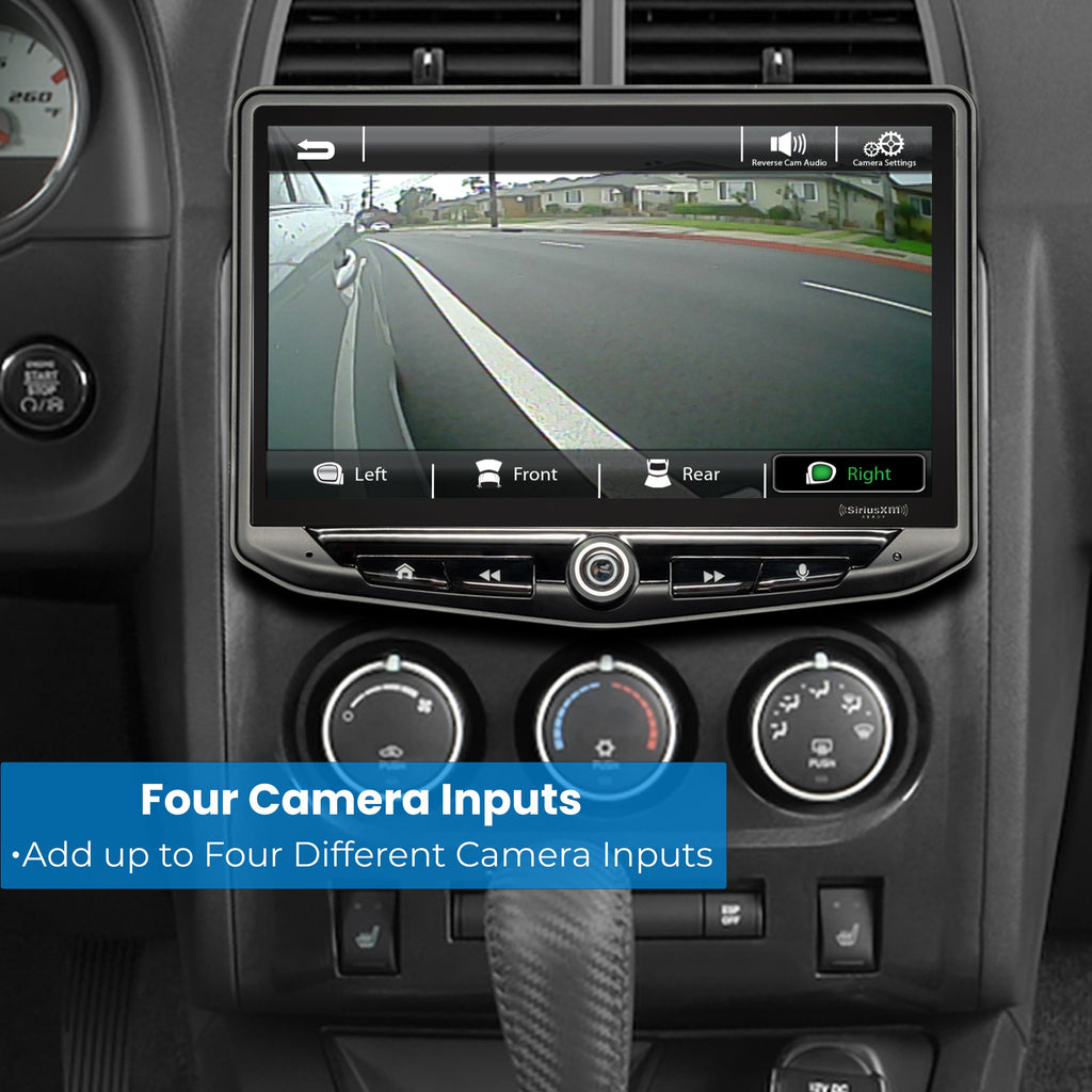 Media Features: Android Auto, Apple CarPlay, hands-free Bluetooth, SiriusXM-ready*, and HDMI. It also has safety features like 4 camera inputs and an integrated GPS (microSD card sold separately).