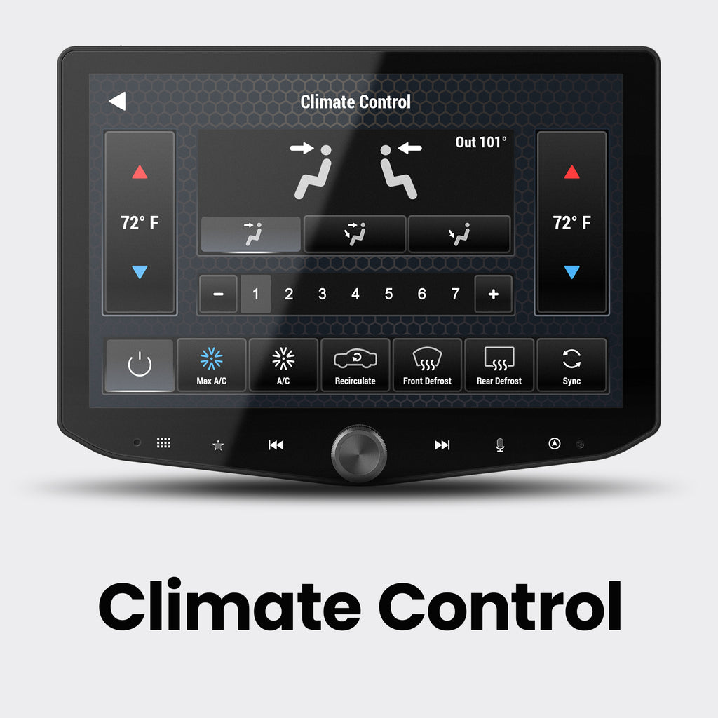 Climate Control: Stay comfortable and in control with the HEIGH10+’s integrated on-screen climate controls! Effortlessly adjust your vehicle’s temperature, fan speed, and airflow with a simple touch, all from the same sleek display.