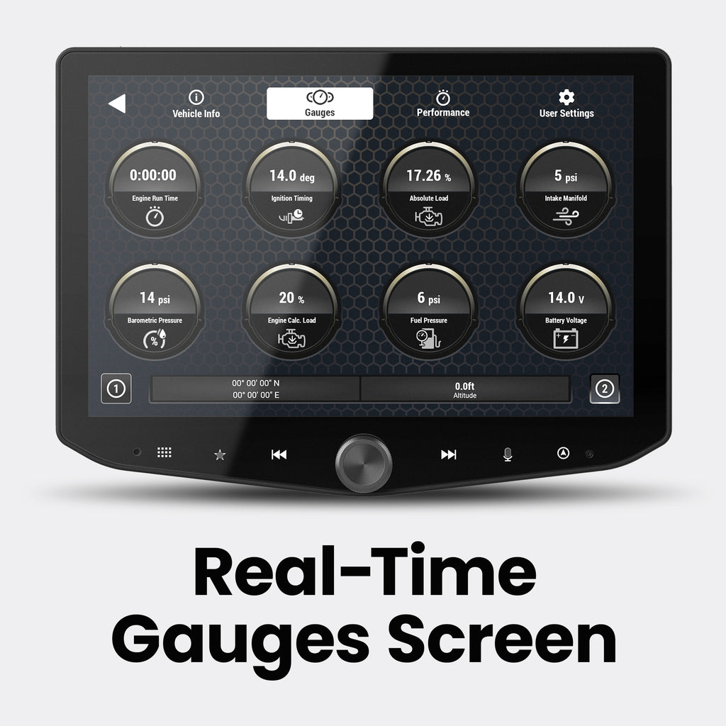 Vehicle Gauges:Display up to eight critical metrics—like battery voltage, oil pressure, and transmission temperature—all on one screen. Save up to two presets, so you always have the data you need, whether cruising around town or taking on intense drives.