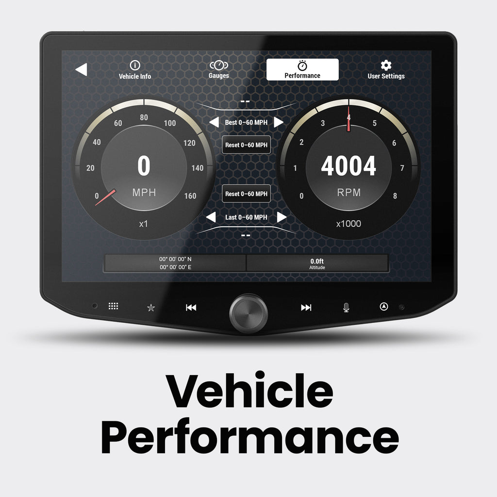 Performance Console: Track your speed and RPMs at a glance while the Performance Console records your best 0-60 mph times, braking distances, and quarter-mile runs.