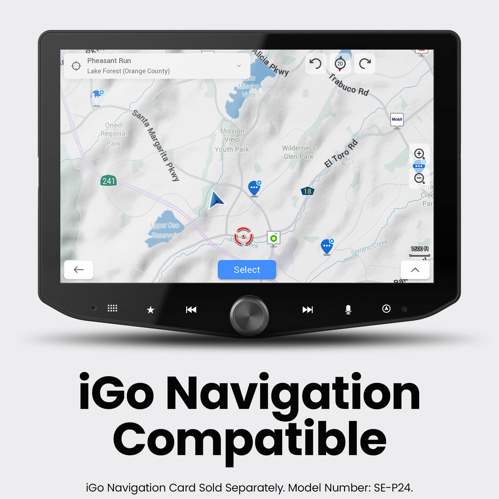 iGO Navigation: This advanced 10" radio has a built-in network-free navigation system. Whether you find yourself in an area with limited data or without cell phone coverage, you can rely on the GPS navigation feature of your head unit to guide you to your destination seamlessly. (Please note the iGO Nav SD Card is required for navigation functionality and can be purchased separately.)