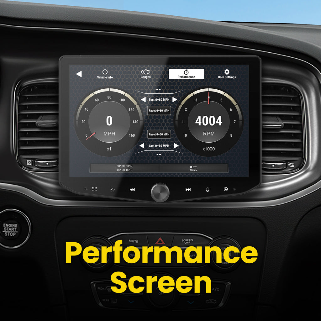 Performance Console: Track your speed and RPMs at a glance while the Performance Console records your best 0-60 mph times, braking distances, and quarter-mile runs.