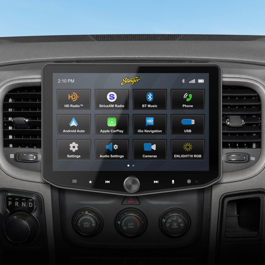 Elevate your Dodge Ram driving experience with the Stinger HORIZON10 10" Radio Plug-and-Play Kit. This state-of-the-art kit showcases an upgraded 10.1" HD touchscreen that resists glare, reflection, and fingerprints, offering a crystal-clear view under any condition. Stay effortlessly connected with enhanced Bluetooth and the seamless integration of wireless Apple CarPlay and Android Auto. Whether cruising through city streets or tackling rugged trails, the IP65 weather-resistant display is engineered for any adventure. Immerse yourself in rich, clear, and detailed audio with Hi-Fi sound quality, and access endless entertainment through SiriusXM-Ready capabilities (SiriusXM Connect Vehicle Tuner and subscription required). Navigate with ease using the optional iGO Navigation via a Micro-SD card slot (SD card sold separately) and manage up to four accessories directly from the intuitive display. The Stinger HORIZON10 is the perfect blend of cutting-edge technology, robust durability, and superior sound quality, offering an enhanced and connected driving experience.