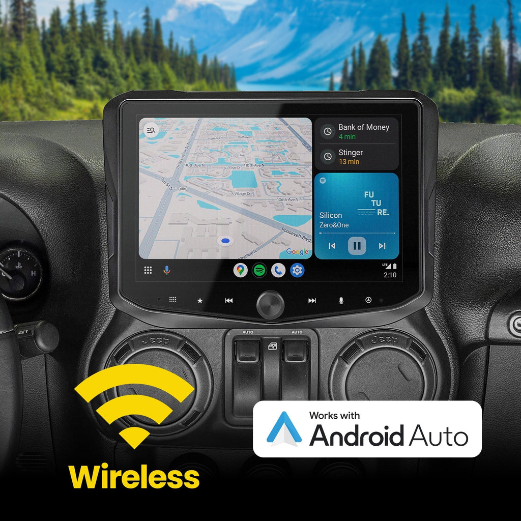 Elevate your Jeep Wrangler JK with the HORIZON10 10" Radio Kit and AHD/CVBS Spare Tire Backup Camera Bundle—crafted for true Jeep enthusiasts. This premium kit combines cutting-edge features with rugged design, perfect for both on-road and off-road adventures. Stay connected with hands-free Bluetooth and wireless Apple CarPlay or Android Auto, while enjoying impeccable sound. The included backup camera offers a crystal-clear 170º field of view, tri-colored parking lines for effortless maneuvering, and high-resolution AHD/CVBS clarity. With a durable build and vibrant 10.1" high-res touchscreen, this bundle enhances your driving experience with unmatched connectivity, safety, and style. Upgrade your Jeep today and conquer the road with confidence!