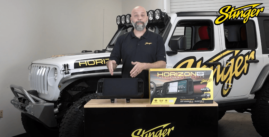 Upgrade your Jeep Wrangler JL or Gladiator JT with the Stinger HORIZON12 Radio Kit, featuring a stunning 12.8" HD touchscreen with anti-glare and anti-fingerprint protection. Seamlessly integrate your smartphone via wired or wireless Apple CarPlay, Android Auto, or Bluetooth, and enjoy a hassle-free plug-and-play installation. This rugged kit includes protective display bumpers, an IP65 weather-resistant screen, and customizable on-screen vehicle gauges with off-road data like altitude and steering angle. Advanced audio features, HD Radio, and SiriusXM readiness provide endless entertainment, while accessory control, ENLIGHT10 LED lighting integration, and AudioControl compatibility enhance functionality. Optional iGO navigation (SD card sold separately) adds reliable GPS for off-road adventures, making the HORIZON12 the ultimate upgrade for style, durability, and performance. *Not compatible with Wrangler 4XE Hybrid Models*