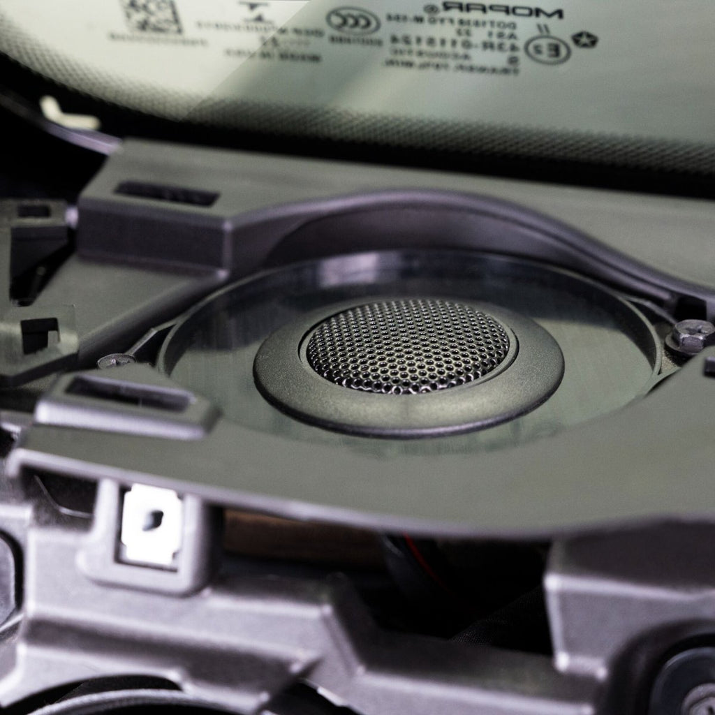 This front speaker pod kit makes it easy to install 6.5" speakers into your Jeep Wrangler JL or Jeep Gladiator JT. This complete package includes pods for mounting 6.5" coaxial or component speakers in the dash of your Wrangler or Gladiator. The kit includes speaker harnesses that plug into the Jeep connectors and provide a universal connection for new speakers, along with tweeter adapters allowing for easy installation of a tweeter in the factory location.