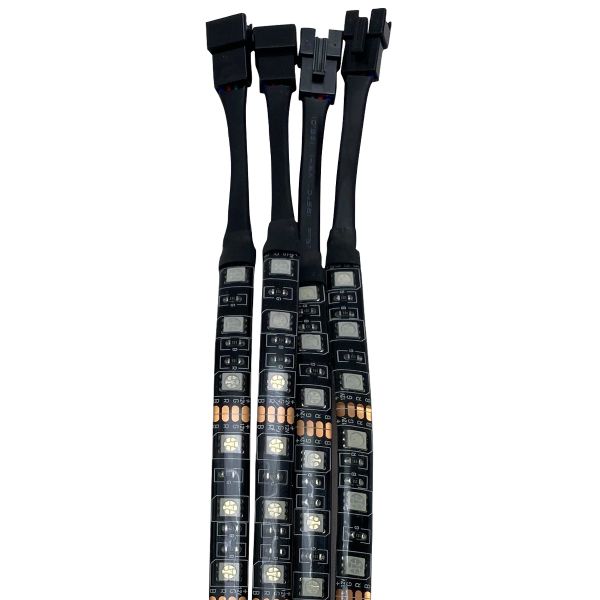 (4) 10” water-resistant flexible RGB LED strips with 3M adhesive backing
