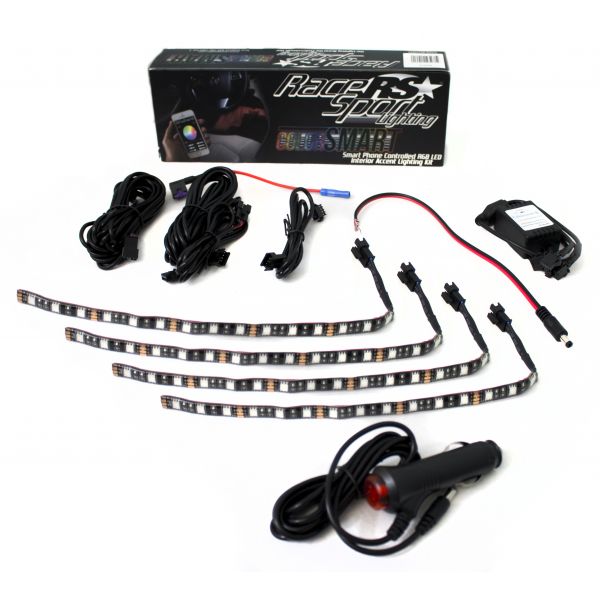 The RSIKCS LED Interior RGB Multi-Color Accent Kit is a revolutionary lighting solution designed to transform your vehicle's interior into a personalized and dynamic space. ColorSMART’s smartphone control allows you to select any color via a color wheel and RGB sliders, change modes between fade, flash, loop, or music sync, and power your strips on and off without needing a remote. This feature is supported on both Android and Apple devices.