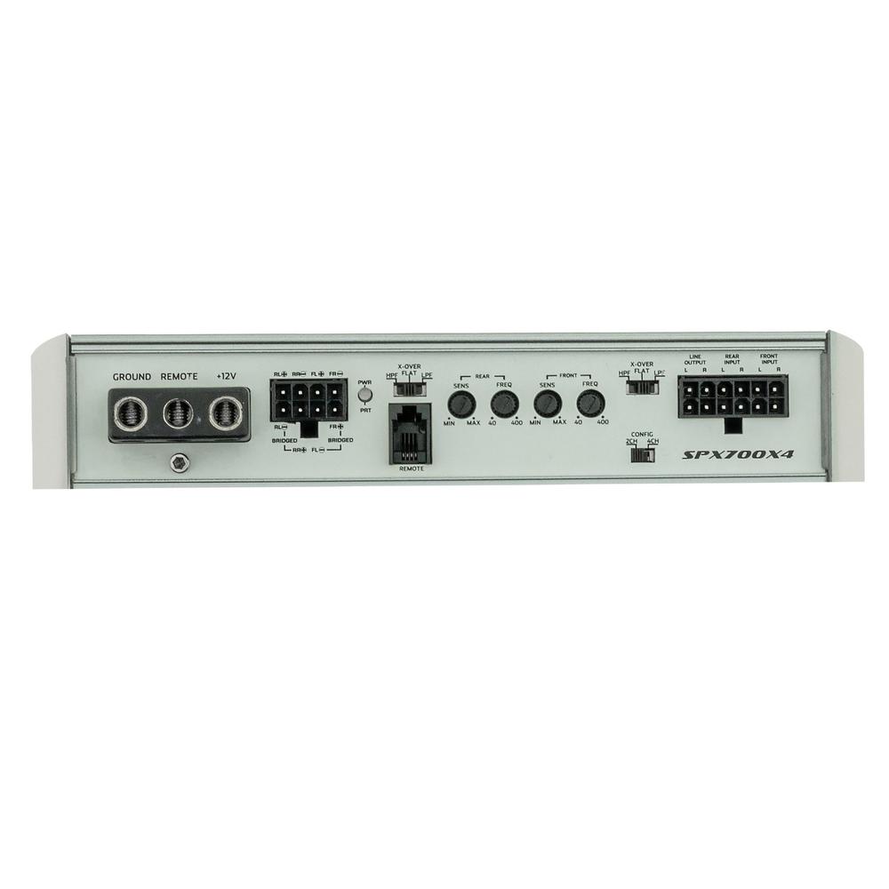 Compact weather-resistant amplifier delivers massive power with minimal size and extreme durability built to withstand the harsh environments you'll meet on the sea, lake, or wherever your water adventure takes you. Featuring an unregulated power supply and a weather-resistant design. Use the mute function/level control on the rear channels when you want a better sense of what's going on around you without losing all your tunes or adjusting the output level of a subwoofer. Add additional amplifiers with minimal wiring thanks to the Aux output RCAs, and you can even stream Bluetooth directly to this mighty amp just by adding an iSimple ISBT23 Weather Proof BT receiver to your set-up.