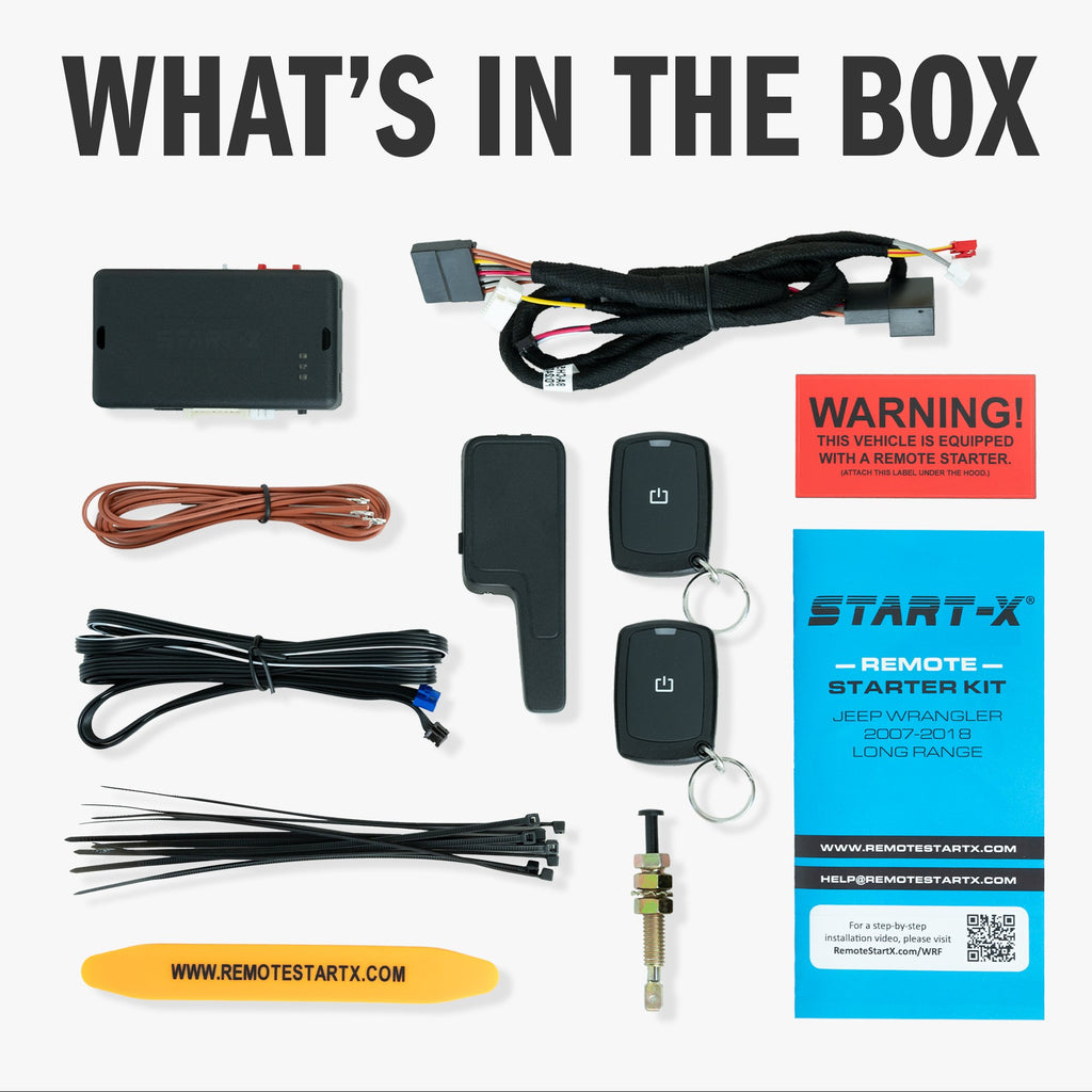 Upgrade your Jeep Wrangler (2007-2018) with the Start-X Remote Start System. During hot weather, you can cool down your vehicle before entering, ensuring a comfortable driving experience right from the start. Conversely, in cold weather, you can pre-heat your vehicle for a warm and defrosting interior before you get in. No more enduring scorching hot seats in the summer or scraping ice off your windshield in the winter. This system includes two long-range key fobs, extending the remote start range up to 2,000 feet. Enjoy a straightforward, 10-minute plug-and-play installation with the included T-Harness, eliminating the need for wire cutting or splicing, though some vehicle disassembly is required. Made specifically for automatic transmission key start models, this system is proudly designed in North America, with reliable technical support available in the USA. Enhance your driving experience with the convenience and efficiency of Start-X.