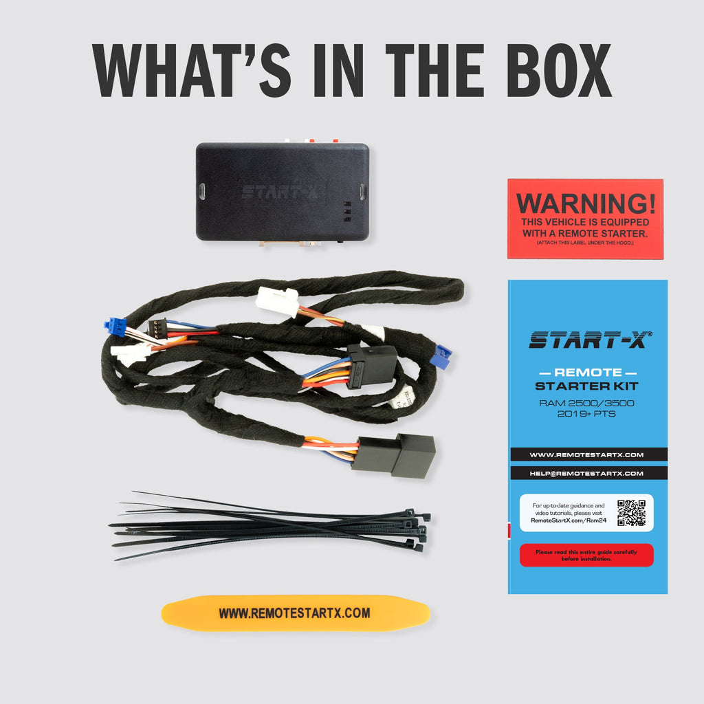 Elevate your RAM 2500/3500 (2019-2024) with the Start-X Remote Start System. During hot weather, you can cool down your vehicle before entering, ensuring a comfortable driving experience right from the start. Conversely, in cold weather, you can pre-heat your vehicle for a warm and defrosting interior before you get in. No more enduring scorching hot seats in the summer or scraping ice off your windshield in the winter. Utilize your existing key fob, and extend your range with a long-range RF kit or cell phone module. Installation is a breeze, taking just 15 minutes with the included T-Harness, which eliminates wire cutting or splicing. A Windows PC or Mac is required to complete the installation, with a clear step-by-step video to guide you. This system is compatible with automatic transmission push-to-start models. Proudly designed in North America, Start-X remote start modules are backed by reliable technical support based in the USA.