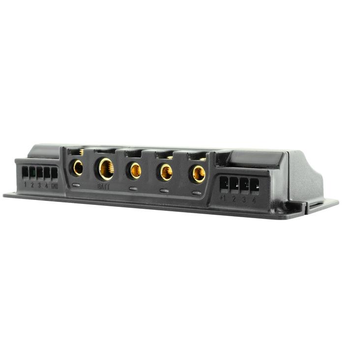 SwitchHUB is a solid-state, high-current relay block with 4 independent outputs. One 40A and three 20A outputs, for a combined total of 100A continuous. Each output can be independently triggered by either a positive or negative trigger, and those outputs can be combined for even more amperage capability. Each output has a thermal overload short circuit protection and LED status indicators for the Thermal/Overload and Active/Inactive status. SwitchHUB eliminates the clutter of multiple high-current relays and the accompanying wiring.