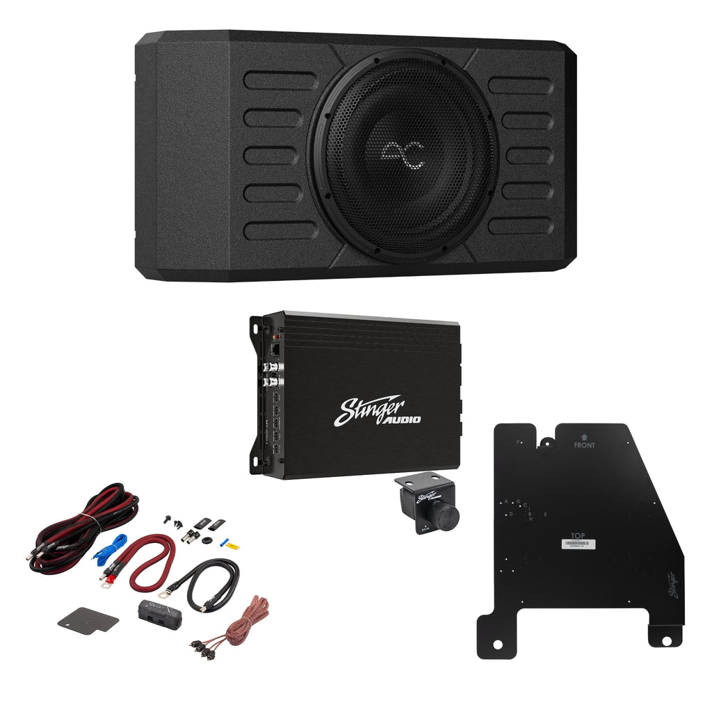 Upgrade your Jeep Wrangler JK Unlimited's audio system with our all-in-one subwoofer solution. The AudioControl 12" loaded enclosure delivers crisp, clear, goose-bump-inducing bass, while our easy-to-install swing gate mount saves space without compromising on sound. The total install kit includes the Stinger Audio Monoblock Amplifier, pumping out 700-Watts of RMS power at 1 ohm for reliable, high-performance audio. With a Jeep Wrangler JK-specific amplifier mounting bracket and Stinger Complete Amplifier 4GA Wiring Kit, you'll have everything you need for a seamless installation. Elevate your driving experience today with unparalleled sound quality and reliability.