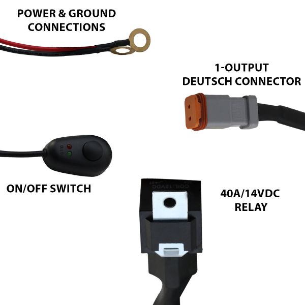 1-Output Deutsch Connection: Powers light bars or auxiliary lights with regulated power and ground.